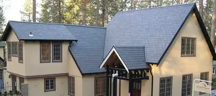 Modern metal roofing is high tech, high style, and will virtually last forever. Metal roofing is typically 24 or 26 gauge in thickness, so it is very sturdy but, at the same time, very lightweight. Metal is also fireproof and, depending on your location, may help lower your home insurance. Metal can often be installed over an existing roof which would save you the additional cost of a tear-off. Many colors are available. Paint is siliconized polyester with weather resistant polymers baked in at the factory. A metal roof can last between 40 and 70 years. This material is highly durable and requires minimal maintenance.